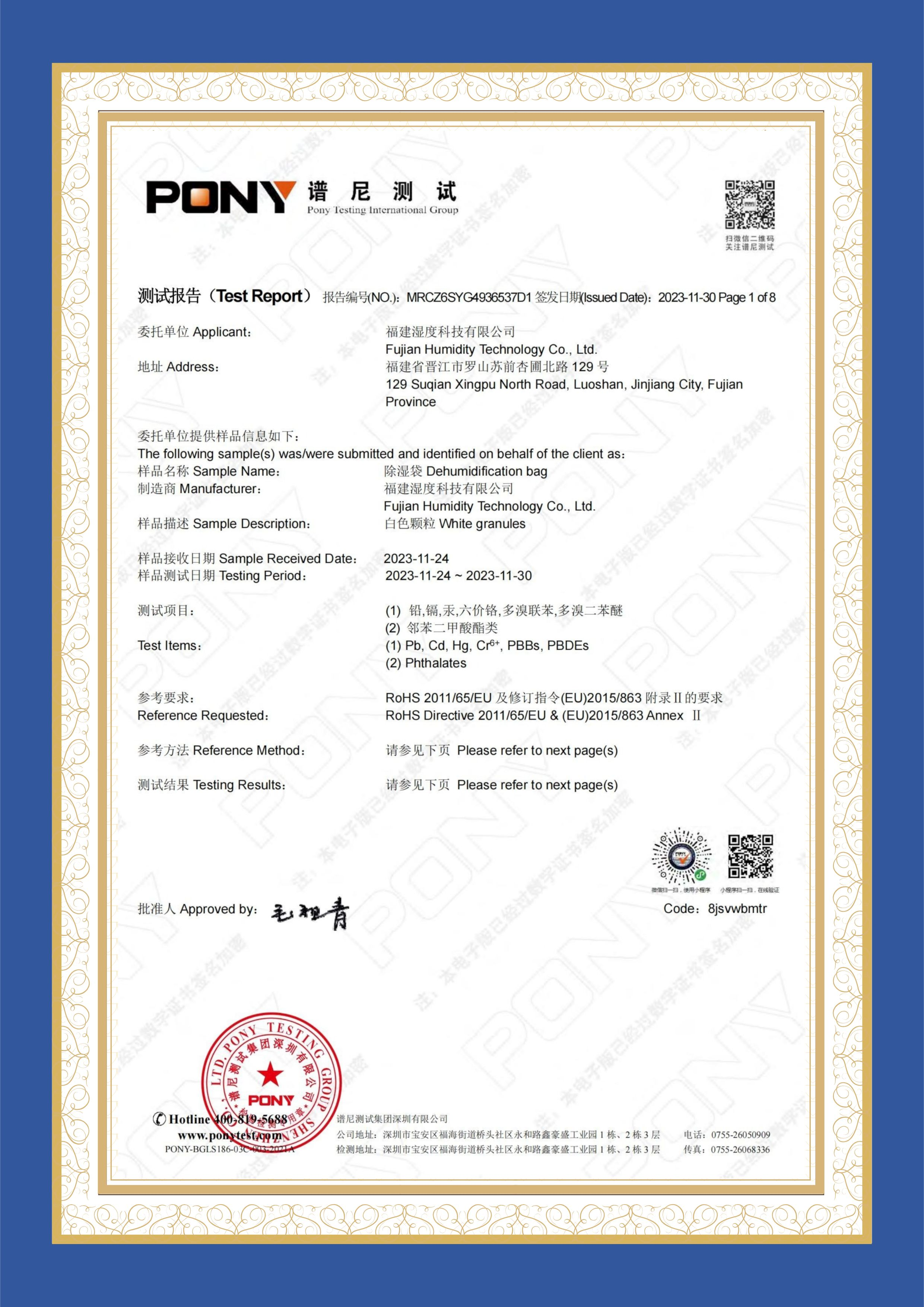 Humidity Technology Co., Ltd. is a scientific research-based manufacturing enterprise specializing in the R & D, production and sales of new materials such as moisture absorption, moisture control, and humidity control. It is committed to providing customers in various fields with convenient moisture absorption, humidity control, and humidity control products. Products include desiccant, moisturizing bag, moisturizing sheet, moisturizing bag, moisturizing agent, etc, products are widely used in automobile, medicine, tobacco, cultural insurance, electronic appliances, logistics and transportation and other fields.